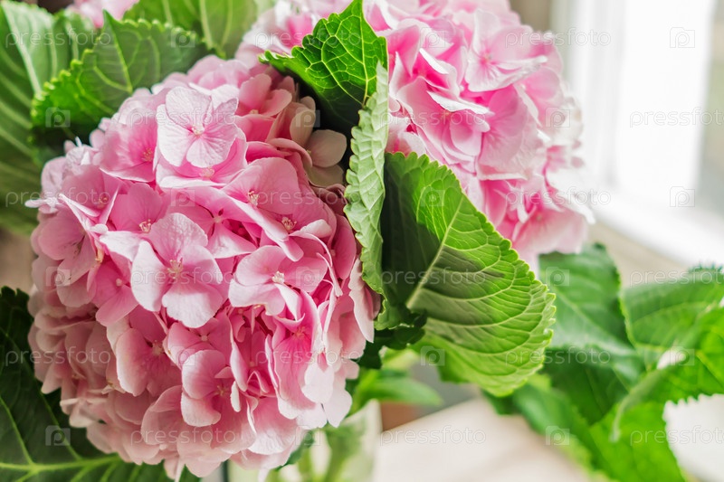 Красивые цветущие розовые цветы гортензии фон