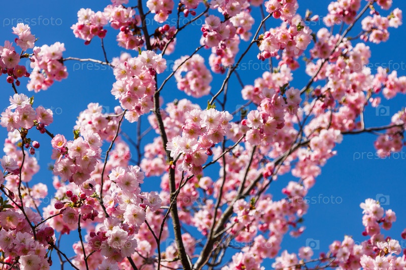 Вишневый цвет или сакура весной над голубым небом