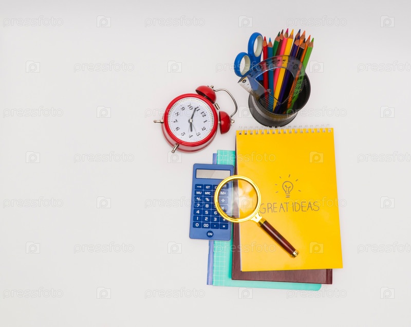 Школьные принадлежности на белом фоне