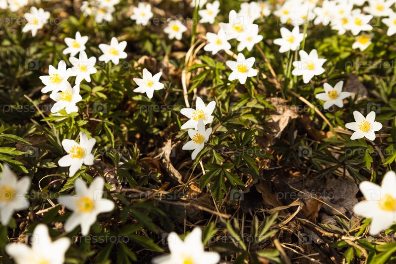 Первый весенний цветок, белый полевой цвет или Hepatica Nobilis, расцветающий ранней весной