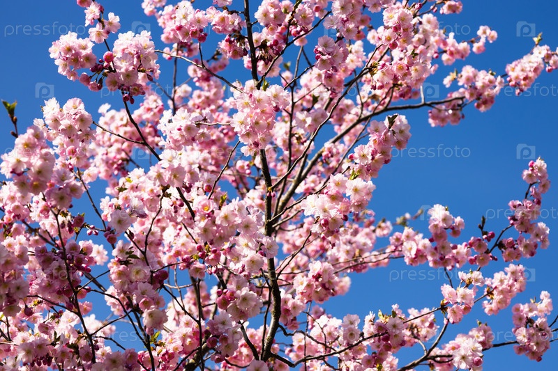 Вишневый цвет или сакура весной над голубым небом