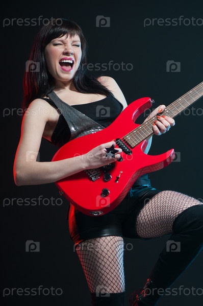 Выразительная рок-звезда играет на гитаре