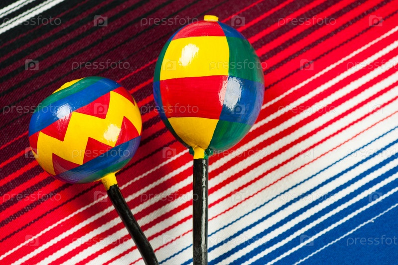 Деревянные маракасы на полосатом мексиканском пончо