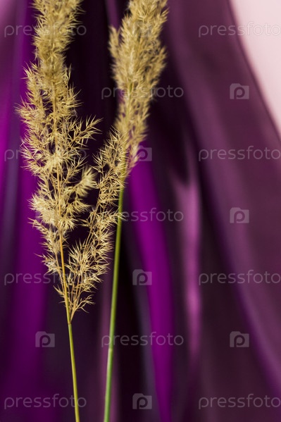Пампасная трава на цветном фоне. пушистая веточка. Фон для рекламы и презентации