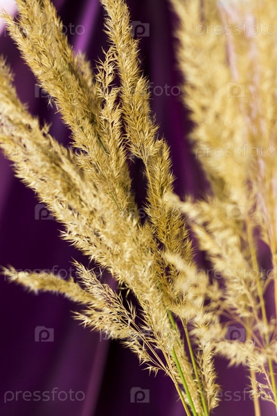 Пампасная трава на цветном фоне. пушистая веточка. Фон для рекламы и презентации