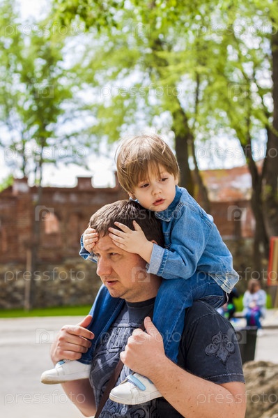 Отец-мужчина проводит время со своим маленьким сыном. Семейные прогулки на природе