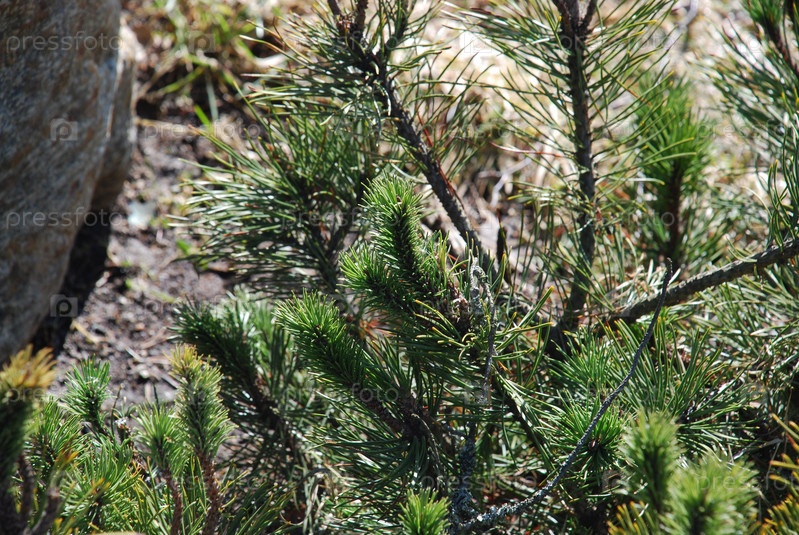 Низкие молодые побеги хвойного дерева