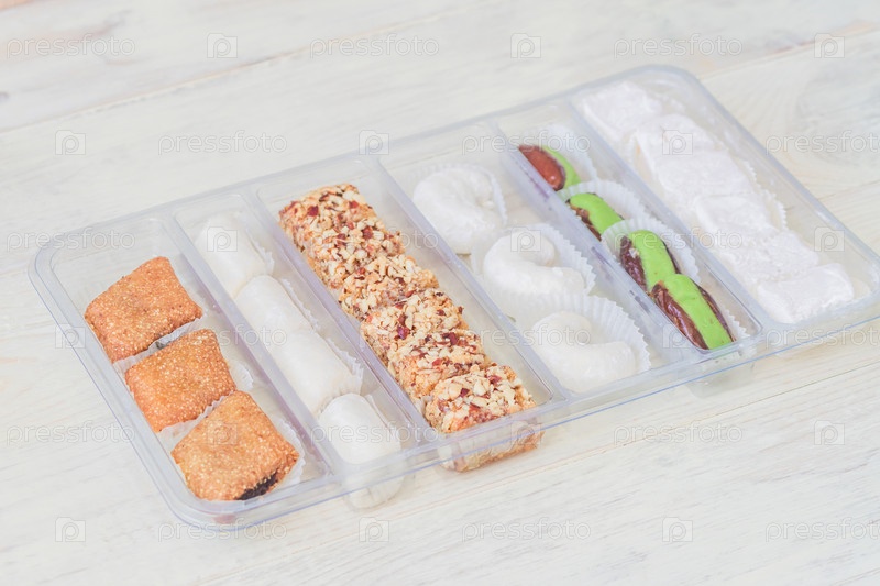 Традиционный рахат-лукум в пластиковой коробке. Ассорти восточных сладостей