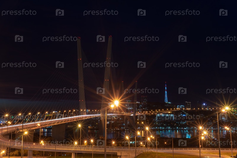 Золотой мост на фоне ночного неба