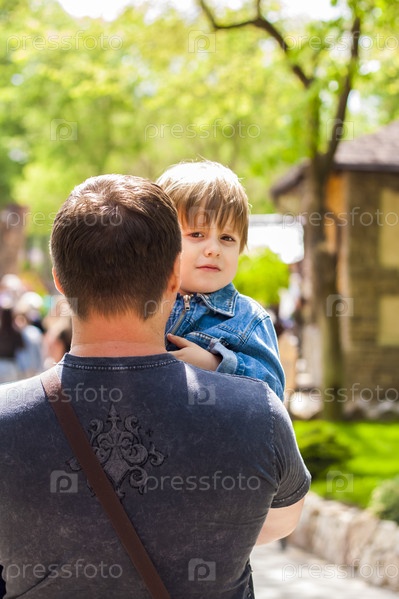 Отец-мужчина проводит время со своим маленьким сыном. Семейные прогулки на природе