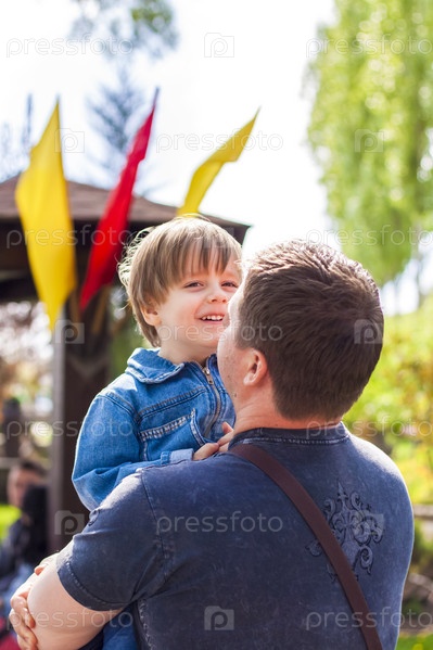 Отец-мужчина проводит время со своим маленьким сыном. Семейные прогулки на природе