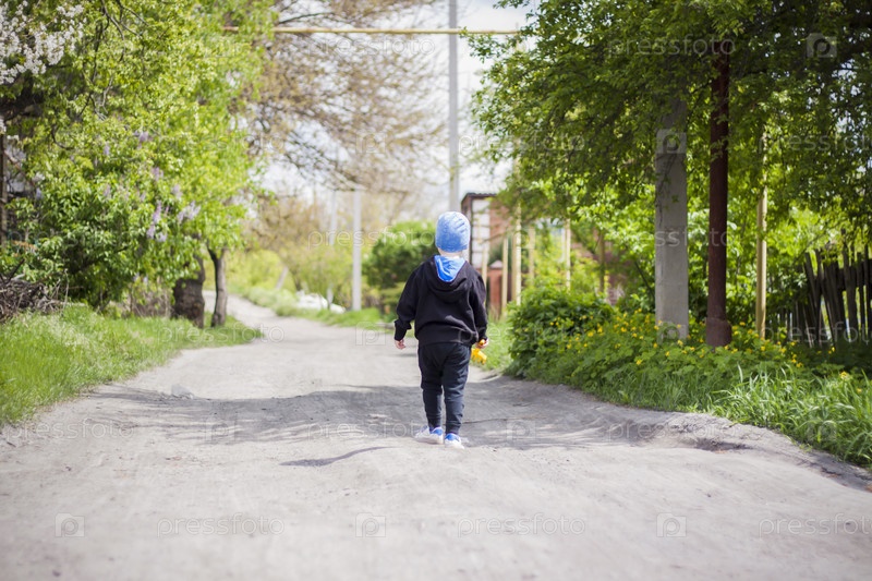 Ребенок сажает огород. Детские грабли в руках. Маленький мальчик-садовник сажает растения на клумбе. Садовые инструменты в руках ребенка