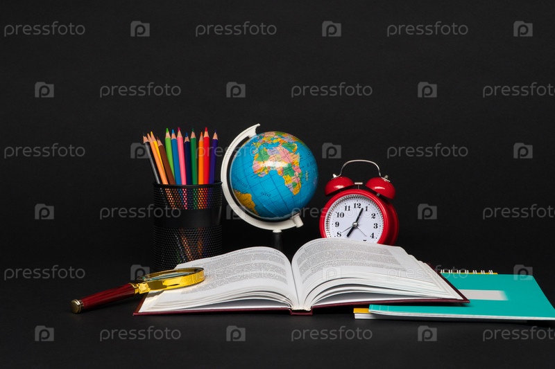 Школьные принадлежности на черном фоне