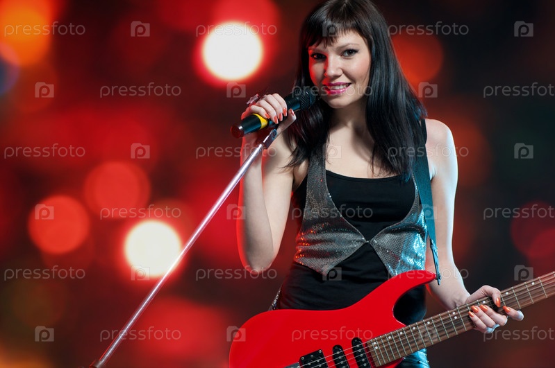 Рок-звезда с электрической гитарой на ярком фоне