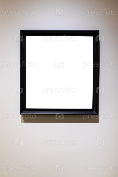 Квадратная черная рамка на серой вертикальной стене
