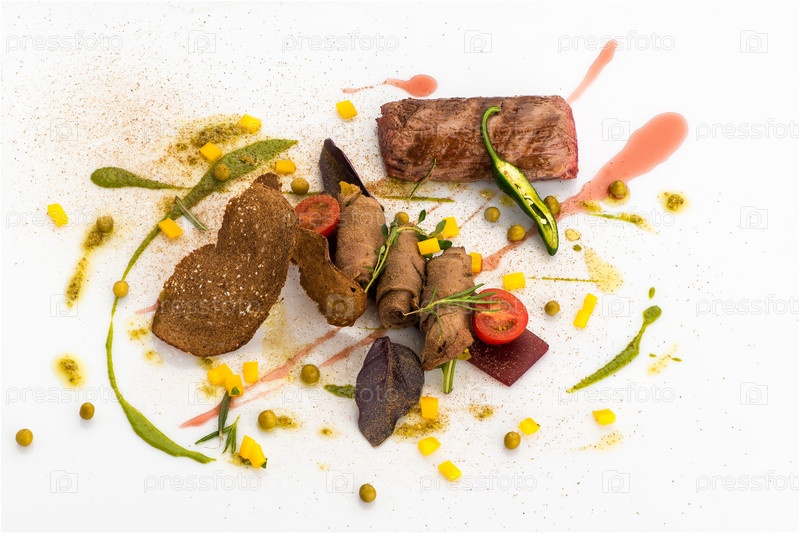 Декоративно украшенная еда на белом
