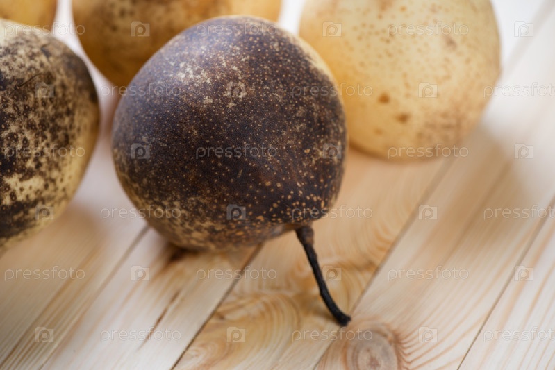 Китайские спелые груши на деревянных досках, крупный план