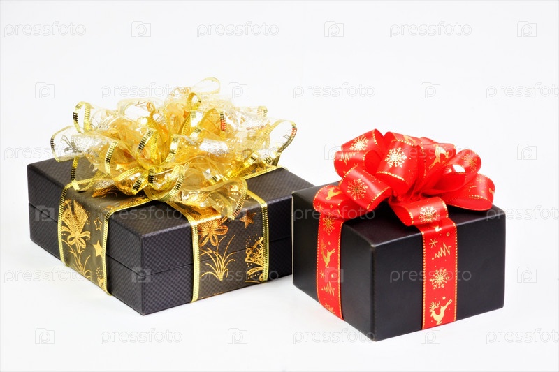 Подарочные коробки-коробки с красными и золотыми бантами, изолированные на белом фоне. Сувенир для праздничных распродаж Черная пятница, Рождество, День святого Валентина, годовщина