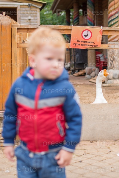 Мальчик гуляет в зоопарке