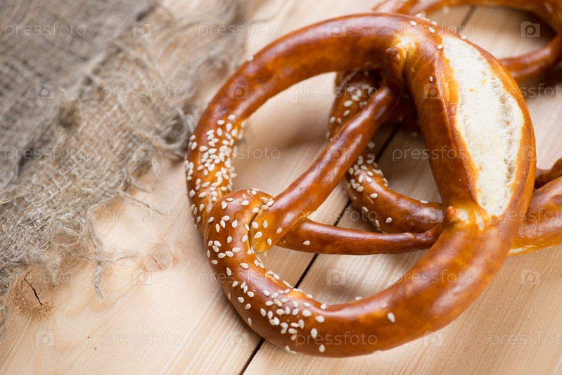 Свежие немецкие крендели на деревянных досках