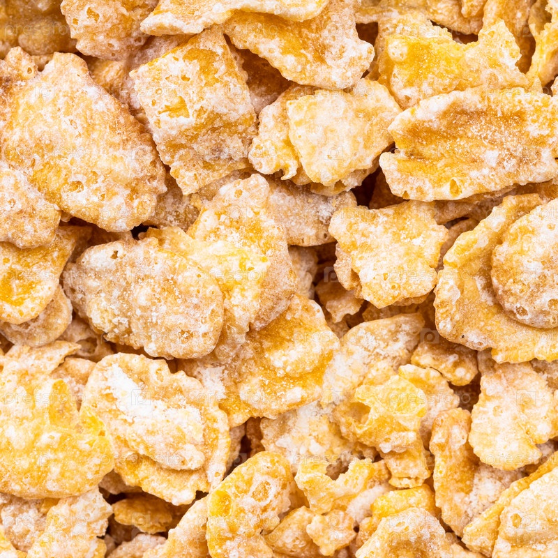 Сырые кукурузные хлопья, покрытые сахаром, крупным планом