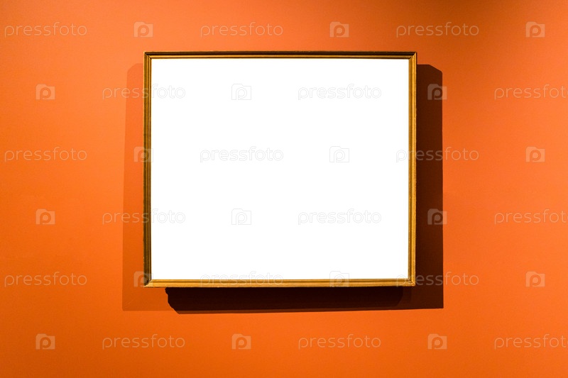 Узкая деревянная рамка на оранжевой стене