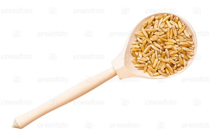 Вид сверху на зерна пшеницы Камут Хорасан в ложке