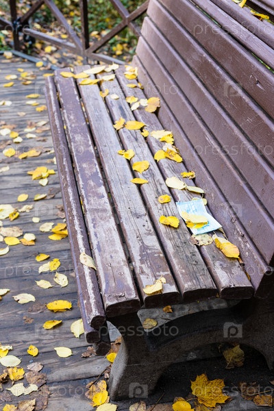 Скамейка с упавшей санитарной маской в парке