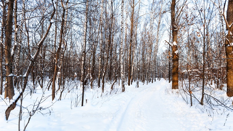 Лыжня и тропинка в заснеженном городском парке