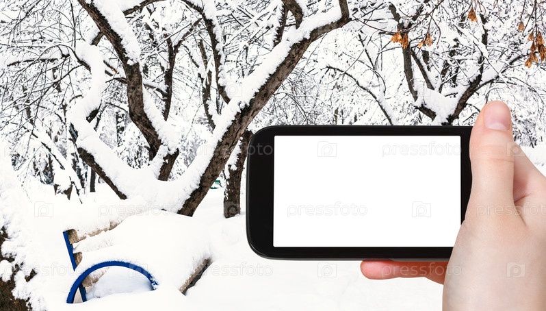 Скамейка в заснеженном городском саду