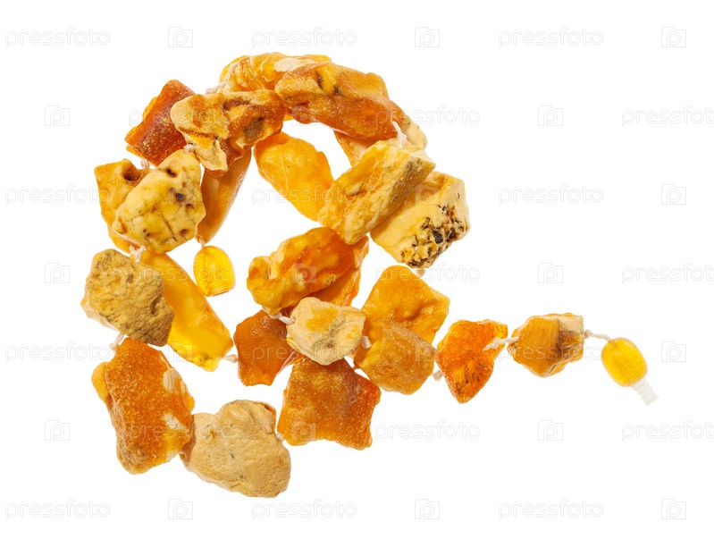 Завязанное колье из необработанного желтого янтаря изолировано
