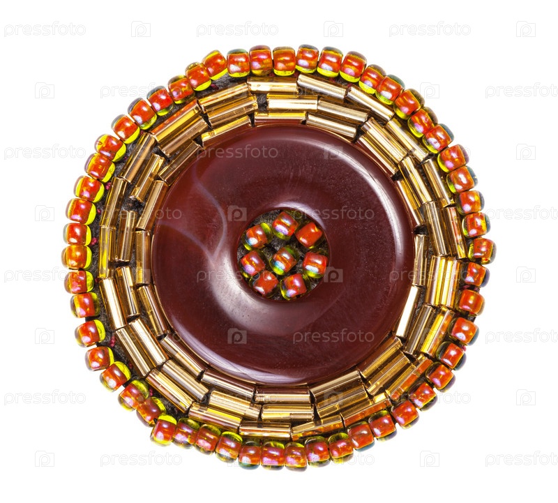 Кожаная брошь, украшенная стеклярусом и стеклярусом