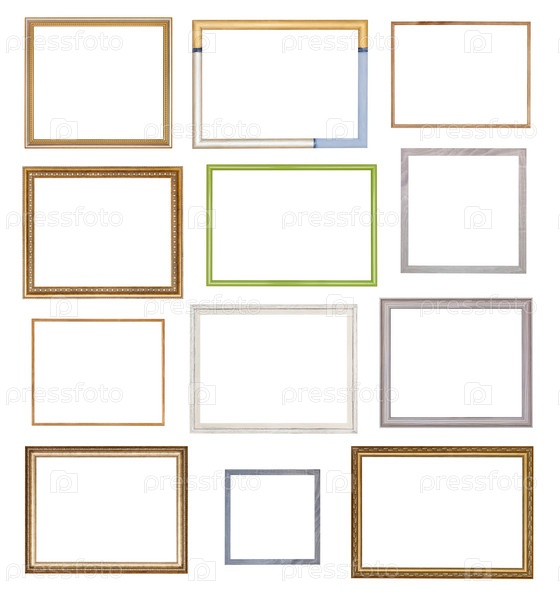 Коллаж из различных пустых деревянных рамок для картин
