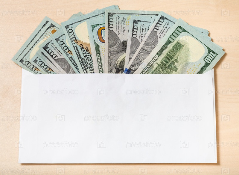 Веер из стодолларовой купюры в конверте