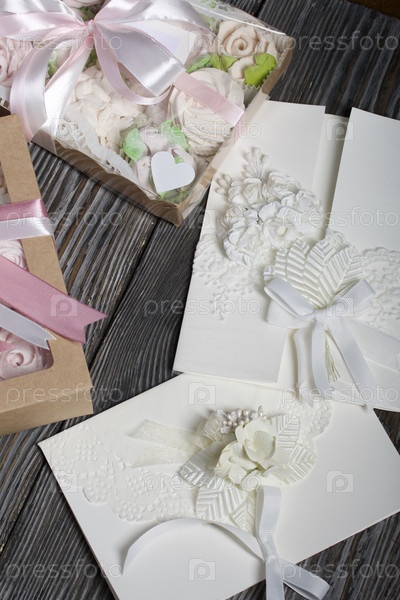 Домашний зефир в подарочной упаковке. Перевязан лентой. Зефир цветы. Домашняя открытка в белом цвете. С декоративными элементами. На картон крепятся ленты, цветы и листья. На черных сосновых досках
