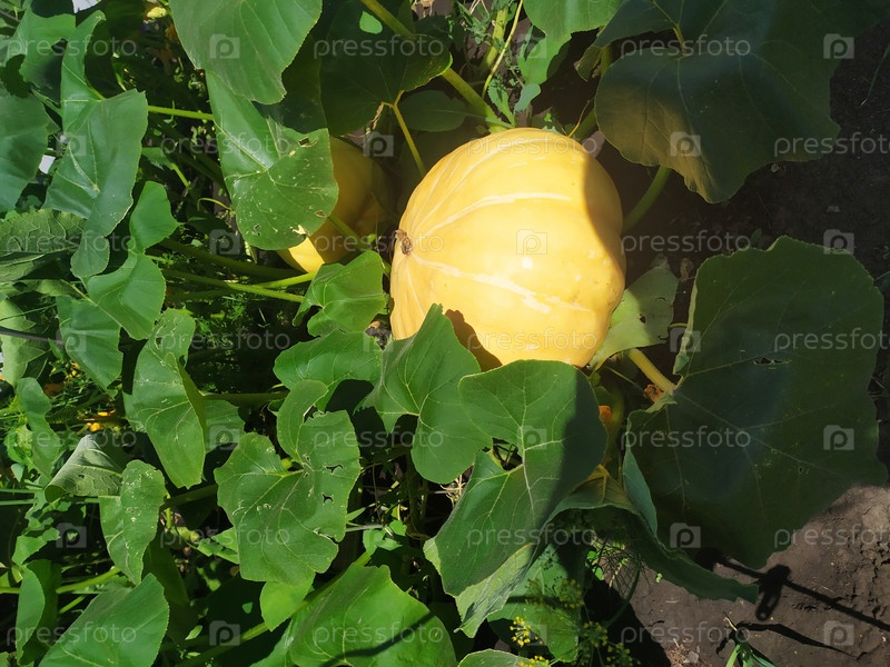 Уборка тыквы в деревне спелая тыква крупными листьями на дачном участке
