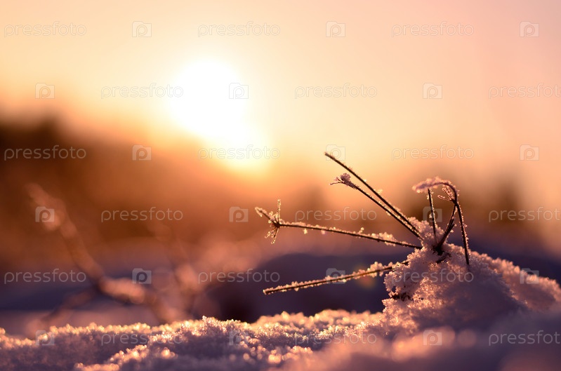 Зимний пейзаж на фоне заката
