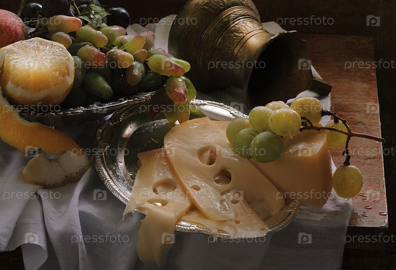 Натюрморт с вином и сыром
