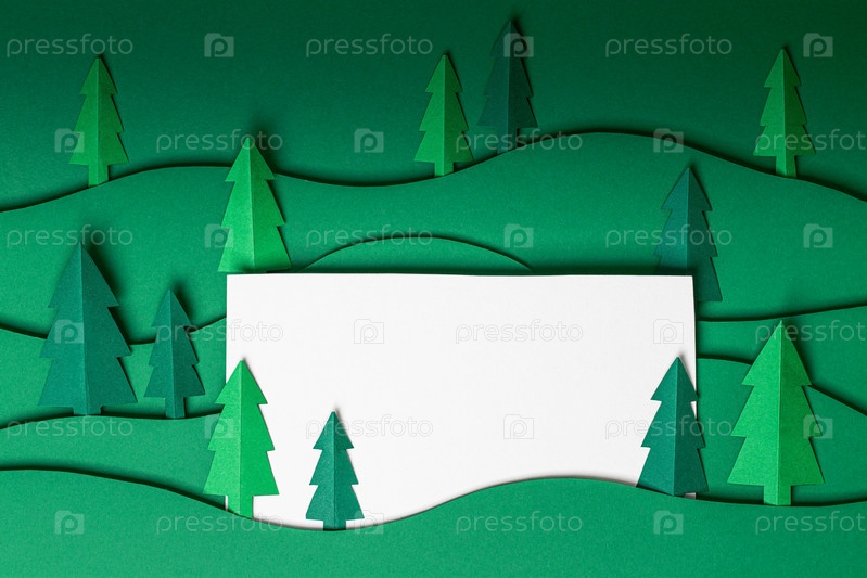 3D всплывающие рождественские елки из бумаги на зеленом фоне
