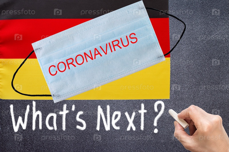 Государственный флаг Германии с одноразовой маской и надписью CORONAVIRUS