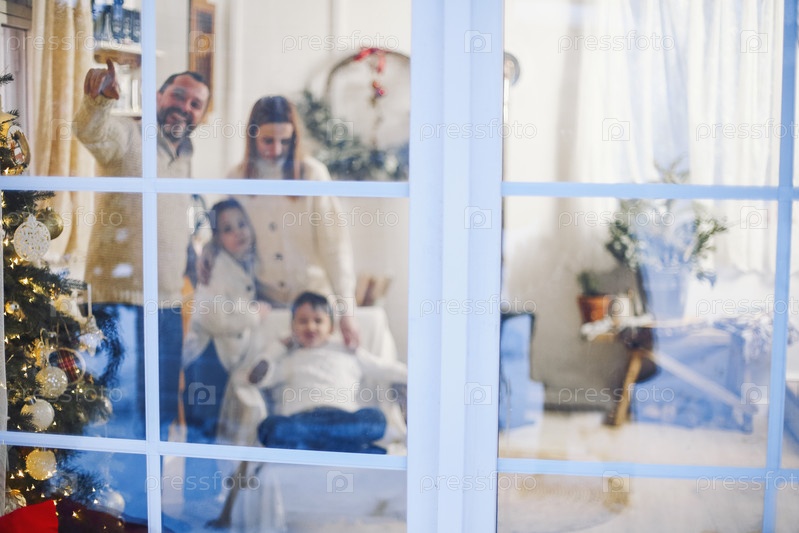 Маленькие дети помогают родителям украсить елку, готовят дом к Рождеству и Новому году