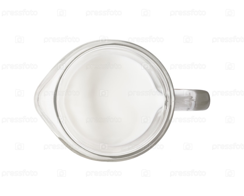 Вид сверху на молоко в стеклянной банке на белом фоне