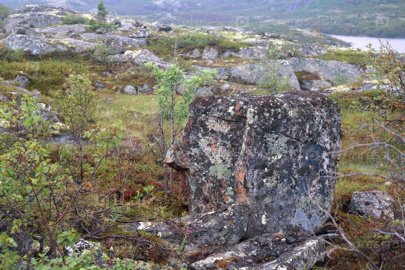 Пейзаж тундры в окрестностях поселка Лиинахамари в Мурманской области за полярным кругом