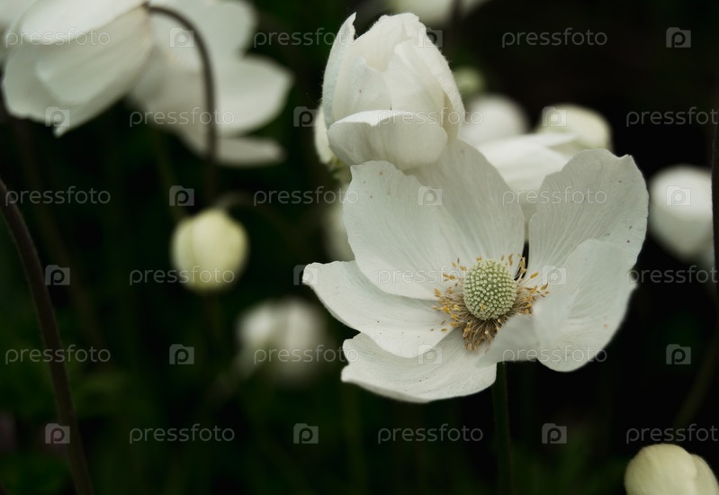 Белые анемоны в саду