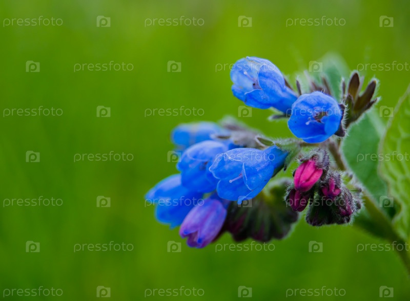 Близкий вид цветущей медуницы на поле