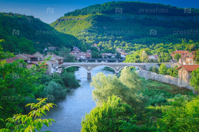 Красивый летний вид на древний мост в Велико Тырново, Болгария