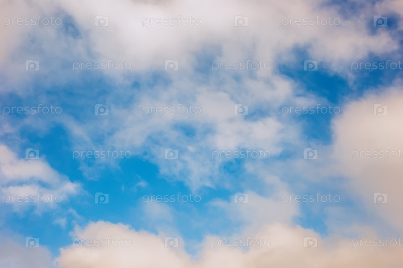 Мягкие и нежные, воздушные белые облака на фоне голубого неба