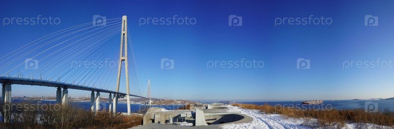 Панорама морского пейзажа с видом на Русский мост