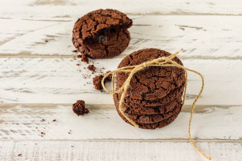 Застрял шоколадного печенья пирожных на деревянных фоне. Домашняя свежая выпечка