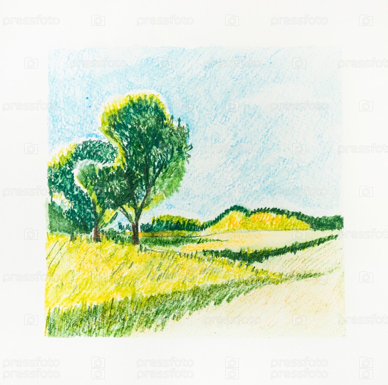 Набросок летнего пейзажа акварельными карандашами